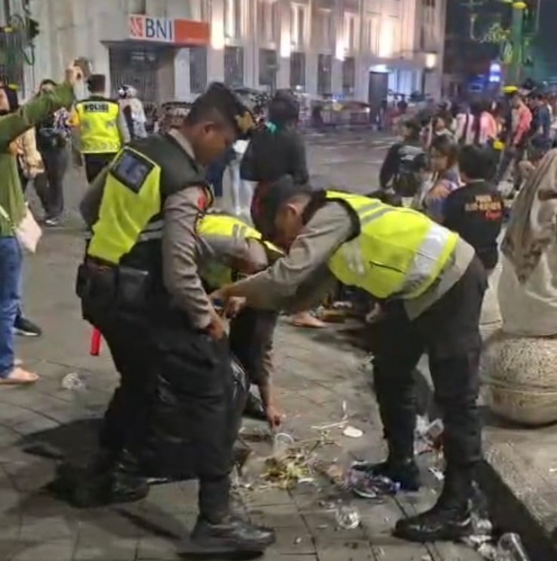 Aksi Humanis Polisi, Punguti Sampah Usai Perayaan Tahun Baru di Yogyakarta