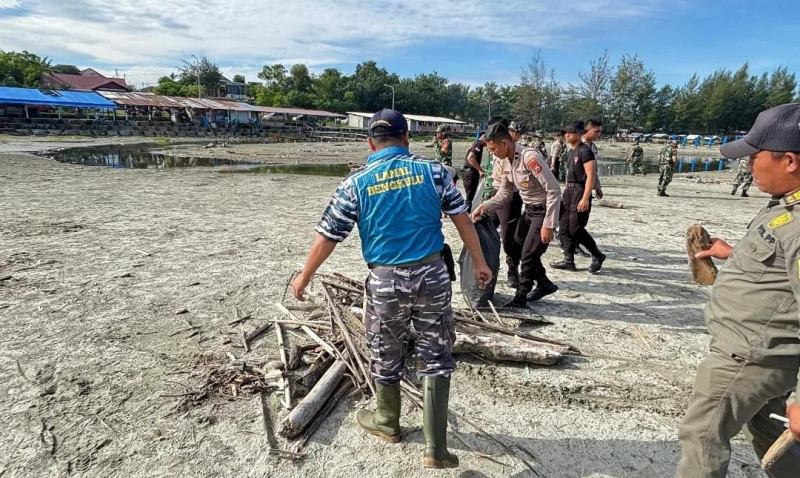 Pantai Zakat yang merupakan salah satu ikon wisata Kota Bengkulu menjadi fokus utama kegiatan ini, Prajurit Lanal Bengkulu bersama-sama dengan instansi terkait bahu-membahu membersihkan sampah-sampah yang berserakan disepanjang pantai mulai dari sampah plastik, botol kaca, hingga sampah organik yang terbawa arus laut.