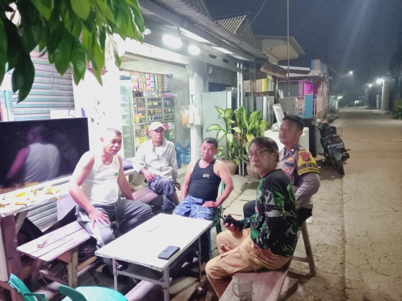 Bhabinkamtibmas Bojong Rawalumbu, Aiptu Heryanto, hadir berdialog langsung dengan warga dan petugas keamanan yang sedang bertugas.