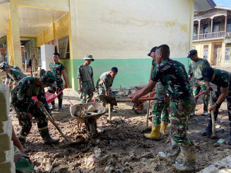 TNI AD dan Warga Bahu-membahu Bersihkan Rumah dan Pondok Bersalin Terdampak Bencana Banjir