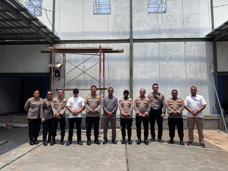 Kapolres Kombes Pol Kusumo Wahyu Bintoro didampingi Dirpolairud Kombes Pol Joko Sadono meninjau lokasi dan menjelaskan detail proyek tersebut, yang berlokasi di wilayah Mapolsek Bekasi Selatan.