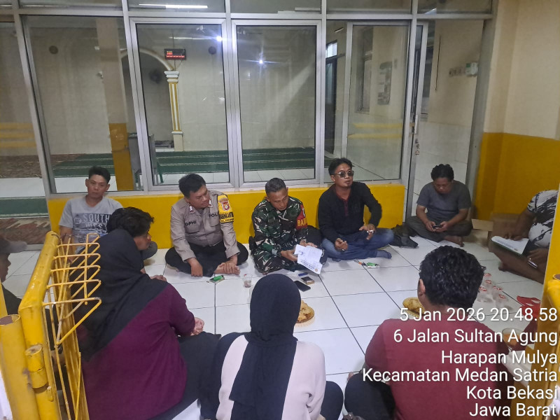 KOTA BEKASI, Media Budaya Indonesia. Com - Dalam upaya menciptakan situasi lingkungan yang aman dan damai, aparat keamanan di wilayah Medan Satria terus memperkuat koordinasi dengan elemen pemuda. Pada Senin malam (05/01/2026), Bhabinkamtibmas Kelurahan Harapan Mulya, Bripka Yophi Prima, S.H., bersama Babinsa Serka Susilo menggelar silaturahmi bersama pengurus Karang Taruna di Kp. Buaran, RT 01/01, Kelurahan Harapan Mulya.