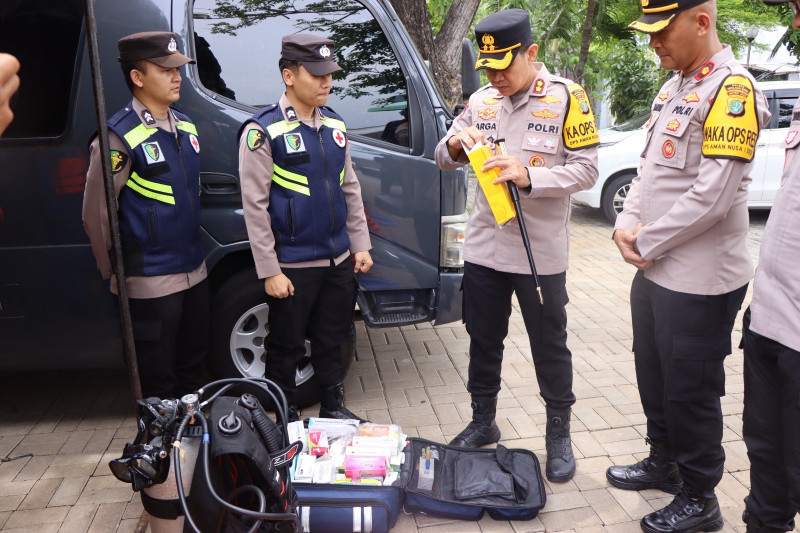 Dalam kegiatan tersebut, Kapolres meninjau langsung kesiapan personel dan sarana prasarana pendukung yang telah disiapkan oleh jajaran Polres Kepulauan Seribu. Berbagai peralatan tanggap darurat seperti perahu karet, pelampung, alat komunikasi, ambulans, kendaraan operasional, serta perlengkapan medis diperiksa satu per satu guna memastikan seluruhnya dalam kondisi siap digunakan.
