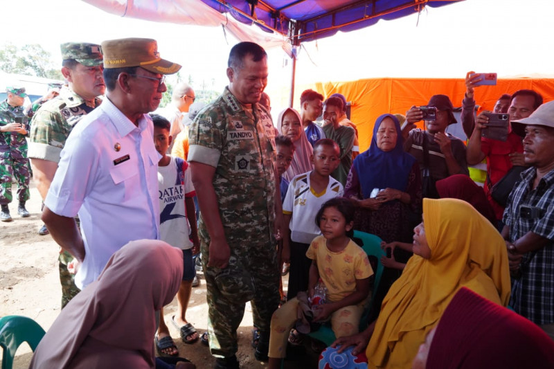 Wapang TNI meninjau secara langsung lokasi bencana, posko, tempat pengungsian, dapur lapangan dan layanan kesehatan serta memberikan bantuan untuk meringankan beban para korban yang terdampak banjir dan tanah longsor di Desa Garoga dan Batuhula.