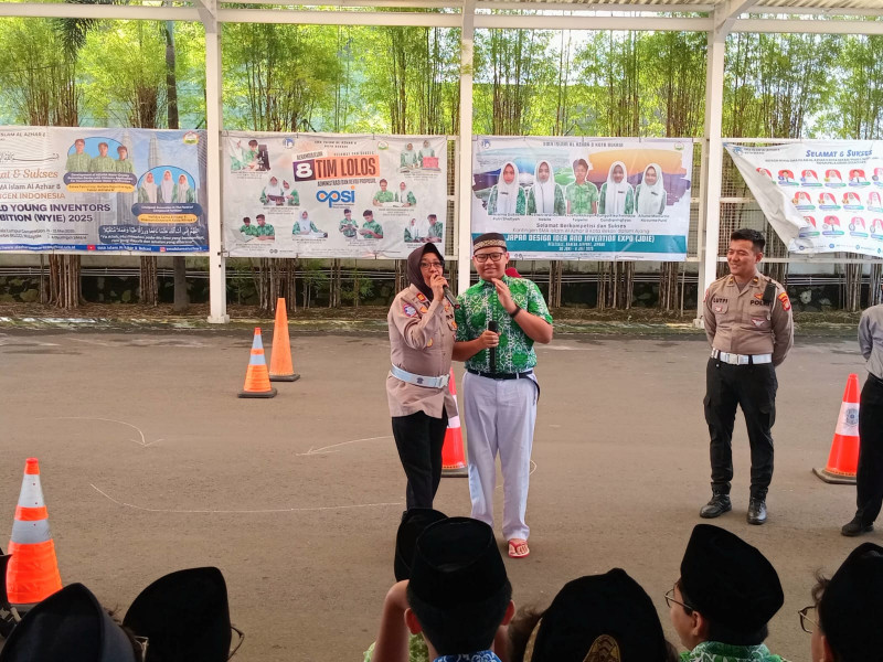 Selain memberikan materi di dalam kelas, petugas juga berinteraksi langsung dengan siswa untuk menumbuhkan kesadaran disiplin dan sikap hormat kepada aturan lalu lintas di lingkungan sekolah dan sekitar jalan raya.