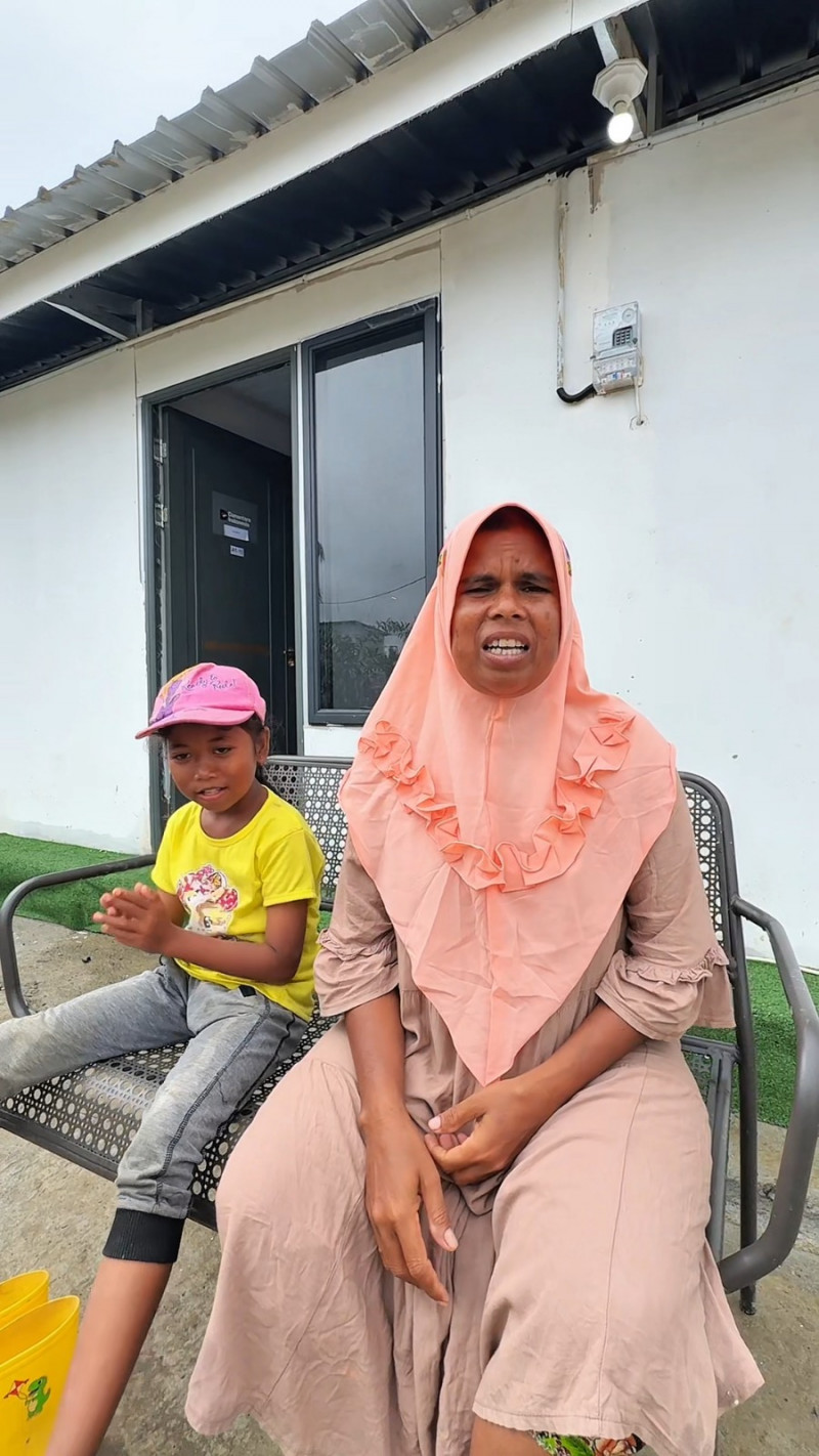 Rika Jahara, salah satu warga yang kini menghuni rumah sementara tersebut, tak mampu menyembunyikan rasa syukurnya. Dengan mata berbinar, ia mengungkapkan kebahagiaannya.