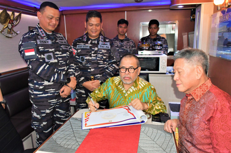 Dalam kesempatan ini, Dubes RI untuk RRT dan rombongan menyempatkan diri berkunjung ke KRI Torani-860 yang sedang sandar di dermaga Kodaeral I.