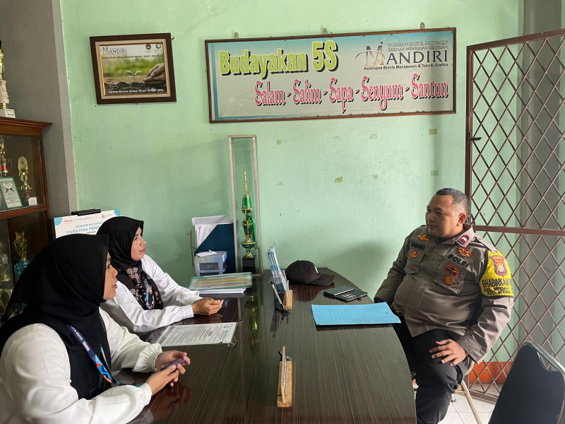 Bhabinkamtibmas Kelurahan Medansatria, Aipda Madaris, melaksanakan koordinasi dengan pihak sekolah. Fokus utama sambang ini adalah memastikan para siswa dan siswi tidak ikut serta dalam aksi unjuk rasa atau penyampaian aspirasi di Jakarta, terutama menjelang momen-momen yang rawan pergerakan massa.