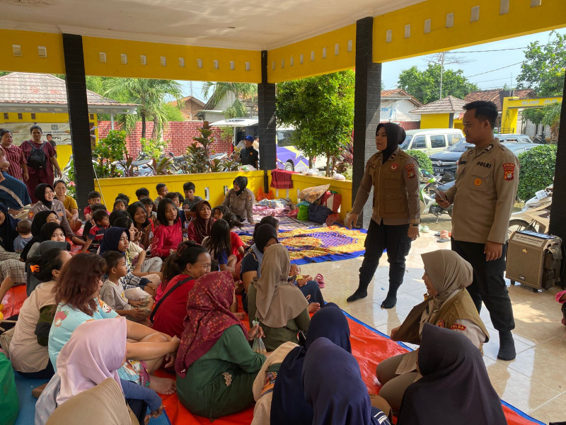Polwan Polres Metro Bekasi dan Tim Psikologi Polda Metro Jaya Gelar Trauma Healing untuk Korban Banjir di Tambelang