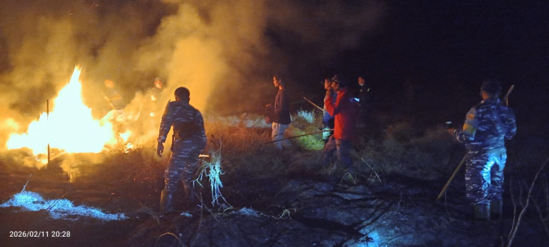 TNI AL, Dumai, Media Budaya Indonesia. Com -Pada Rabu malam 11 Februari 2026 sekitar pukul 19.00 WIB, kebakaran lahan kembali terjadi di wilayah Pesisir Riau. Api melanda area perkebunan kelapa sawit milik warga di Dusun Sejati Jaya, Kepenghuluan Sei Bakau, Kecamatan Sinaboi, Kabupaten Rokan Hilir. Peristiwa tersebut segera mendapat respons cepat dari Babinpotmar Pos TNI AL (Posal) Sinaboi bersama Babinkamtibmas Polsek Sinaboi serta masyarakat setempat bahu membahu melaksanakan upaya pemadaman guna mencegah kebakaran meluas lebih jauh.
