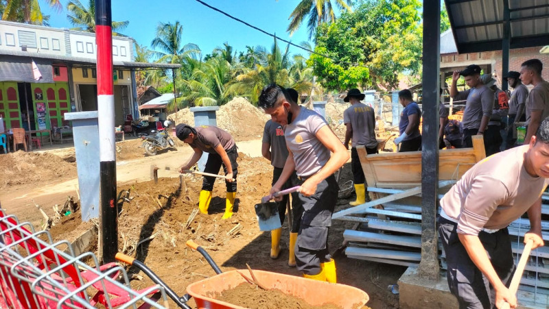 Polri dan Warga bergandengan Tangan, Polindes Meunasah Mancang Bangkit dari Lumpur Banjir