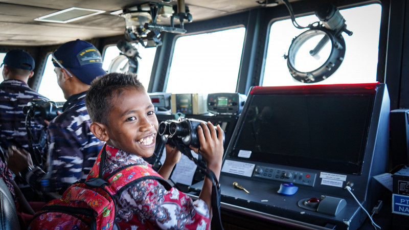 Pada kesempatan tersebut, Prajurit KRI Kerapu-812 memperkenalkan peralatan navigasi, dan senjata, serta memberikan pengetahuan tentang kehidupan di Kapal Perang.