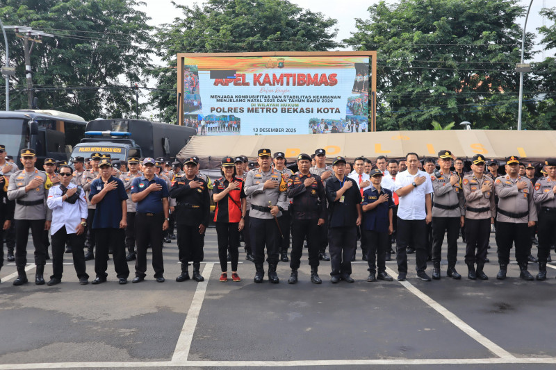 Bekasi Kota, Media Budaya Indonesia. Com -Polres Metro Bekasi Kota menggelar apel kamtibmas dalam rangka pengamanan perayaan Natal 2025 dan menyambut Tahun Baru 2026, Sabtu (13/12/2025) pagi di lapangan apel Mapolres. Kegiatan dimulai pukul 08.00 WIB dan dipimpin Inspektur Apel, Kapolres Metro Bekasi Kota Kombes Pol. Kusumo Wahyu Bintoro, S.H., S.I.K., M.H., dengan AKP Setiyo Budi Mahanani sebagai Komandan Apel dan AKP Puji Astuti, S.H. sebagai Perwira Apel. Turut hadir Wakapolres AKBP Bayu Pratama Gubunagi, para pejabat utama, anggota Polres, serta perwakilan Kanit Binmas Polsek jajaran, Bhabinkamtibmas dan mitra Polri.