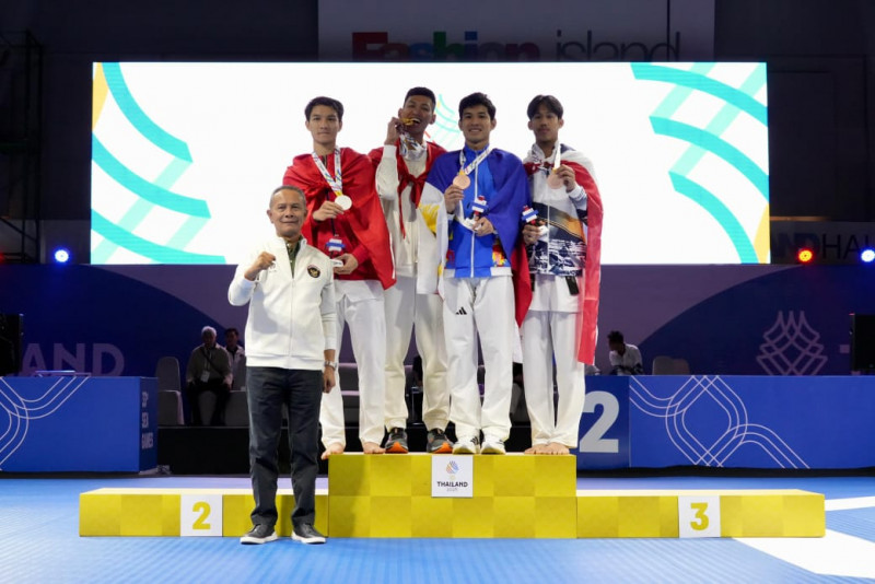 Thailand, Media Budaya Indonesia. Com - Atlet Taekwondo Indonesia kembali menorehkan prestasi pada SEA Games ke-33 Tahun 2025 di Thailand dengan meraih 10 medali (2 Emas, 2 Perak dan 6 Perunggu) dari kategori Poommsae Putra