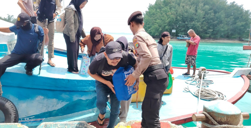 Anggota Polisi Polsek Kepulauan Seribu Utara Bantu Penumpang di Dermaga Pulau Kelapa