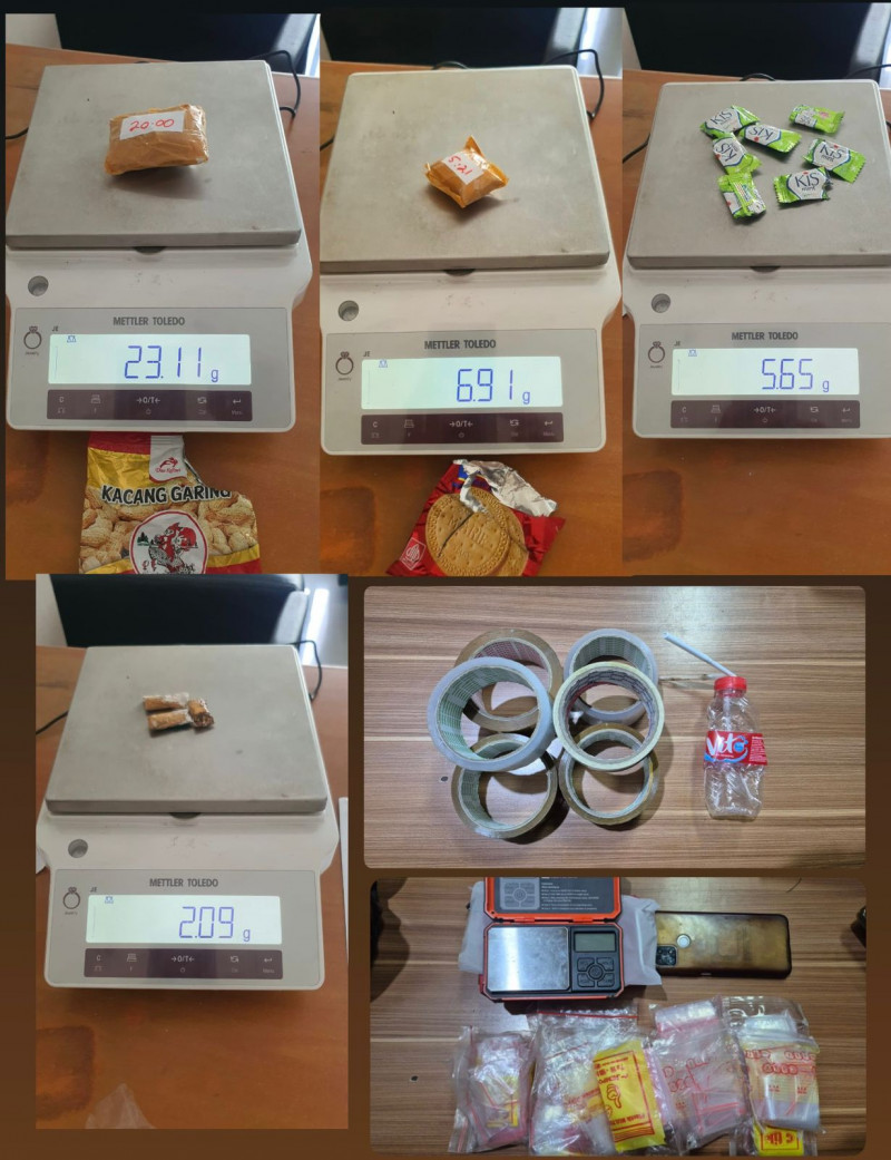 - 23,11 gram sabu dalam plastik klip yang disembunyikan dalam bungkus kacang.