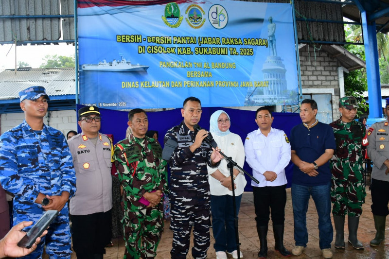 TNI AL , Bandung, Media Budaya Indonesia. Com - Pangkalan TNI Angkatan Laut (Lanal) Bandung bersama Dinas Kelautan dan Perikanan (DKP) Provinsi Jawa Barat menggelar aksi "Bersih Pantai Jabar Raksa Sagara" yang dihadiri langsung oleh Komandan Lanal Bandung Kolonel Laut (P) Erfan Indra Darmawan, S.E., M.Tr.Hanla., M.M., CIQaR., dan Kadis DKP Provinsi Jawa Barat Rinny Cempaka, S.Si., M.T. di Cisolok, Kabupaten Sukabumi, Selasa, (18/112025).