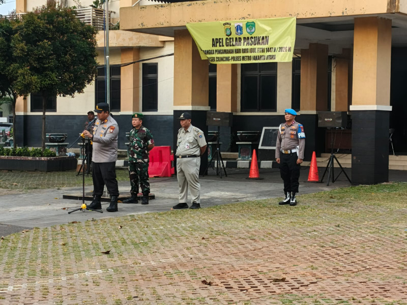 Apel yang berlangsung di halaman Kantor Kecamatan Cilincing ini dipimpin langsung oleh Kapolsek Cilincing, AKP Bobi Subasri, serta dihadiri unsur tiga pilar dan elemen masyarakat, di antaranya Koramil, Satpol PP, Dishub, Damkar, Pramuka, Pokdar Kamtibmas, hingga FKDM.Sebanyak 122 personel gabungan dikerahkan dalam kegiatan tersebut sebagai bentuk kesiapan pengamanan malam takbir hingga pelaksanaan Sholat Idul Fitri.