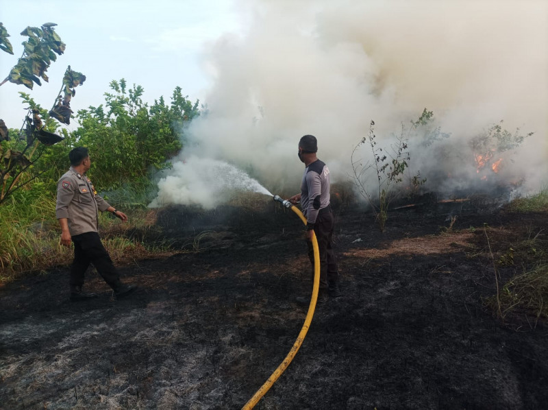 Bhabinkamtibmas Pulau Pari Bantu Damkar Padamkan Kebakaran Lahan Ilalang di Pantai Perawan