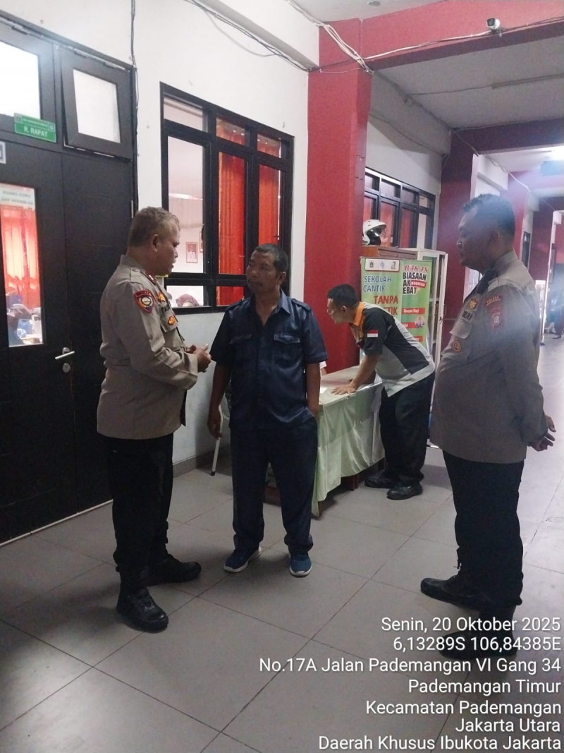 Kapolsek Pademangan Kompol Immanuel Sinaga, S.H., S.I.K., M.H. menyampaikan apresiasi terhadap peran aktif personel di lapangan yang secara rutin melakukan sambang dan edukasi kamtibmas.