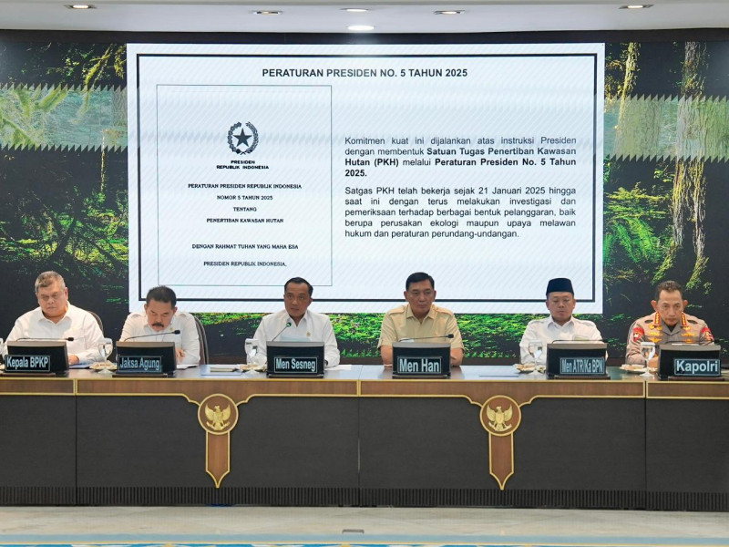 “Berdasarkan laporan tersebut, Bapak Presiden mengambil keputusan untuk mencabut izin 28 perusahaan yang terbukti melakukan pelanggaran,” kata Menteri Sekretaris Negara, Prasetyo Hadi, saat memimpin konferensi pers Satgas PKH, di Kantor Presiden, Jakarta, Selasa (20/1).