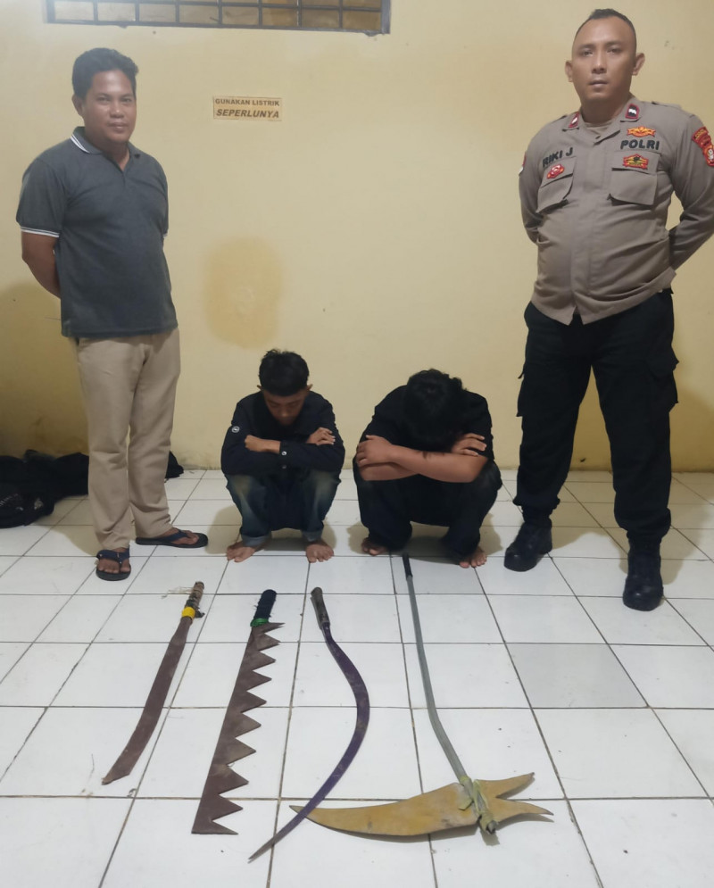 Sebanyak tujuh orang diamankan, masing-masing berinisial RA (17), MA (12), EE (14), MRR (14), MBP (22), R (20), dan YS (20). Polisi juga menyita empat sepeda motor serta senjata tajam berupa pedang, tongkat besi, pedang bergerigi, dan celurit.