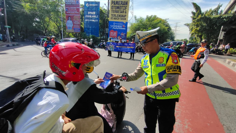 Selain itu, personel memberikan edukasi keselamatan berkendara, meliputi etika berlalu lintas, kepatuhan pada rambu, serta pentingnya menjaga keselamatan diri dan pengguna jalan lainnya.