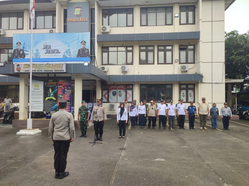 Apel yang berlangsung di halaman Mapolsek Koja tersebut dipimpin langsung oleh Kapolsek Koja, Kompol Dr. Andry Suharto, S.H., M.H., dan diikuti sebanyak 135 personel gabungan dari Polri, TNI, Satpol PP, Dinas Perhubungan, Damkar, hingga unsur masyarakat seperti FKDM, Pokdarkamtibmas, Mitra Polri, dan Pramuka.