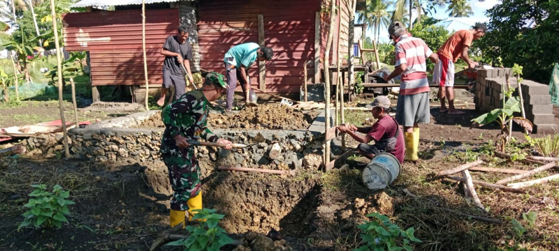 Personel Satgas TMMD Ke-127 Kodim 1514/Morotai Lanjutkan Pembangunan MCK di Desa Dehegila