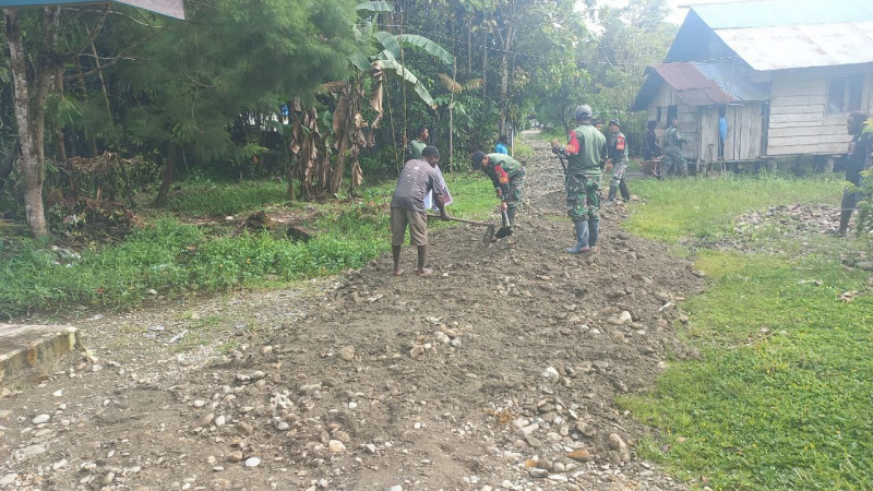 Bakti Nyata Jelang HUT Ke-80 TNI, Kodim 1710/Mimika Perbaiki Jalan Kampung