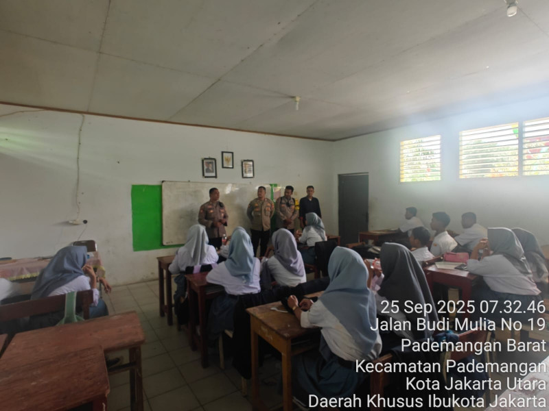 Kegiatan tersebut pada Kamis (25/9/2025) pagi, personel Polsek Pademangan menyambangi SMK Raudhatul Jannatinna’im di Jalan Budi Mulia, Pademangan Barat, Jakarta Utara. Mereka memberikan penyuluhan tentang bahaya narkoba serta dampak kenakalan remaja bagi masa depan pelajar.
