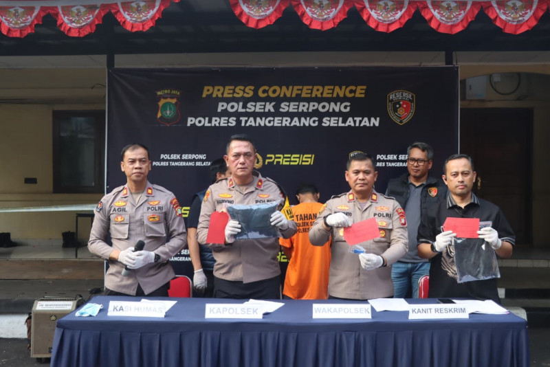 Hal tersebut disampaikan Kapolsek Serpong Kompol Suhardono, S.H., M.M. dalam konferensi pers di Mapolsek Serpong, Rabu (24/9) siang. Turut hadir Kasi Humas Polres Tangsel AKP Agil Sahril, Wakapolsek Serpong AKP Purwanto, dan Kanit Reskrim AKP Joko Aprianto.