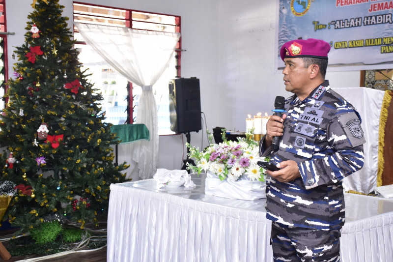 Dalam sambutannya, Dankodaeral X juga menegaskan komitmen Kodaeral X untuk terus menjaga kebersamaan, persatuan, keamanan, dan ketertiban masyarakat. Ia berharap semangat Natal mempererat hubungan antara TNI dan masyarakat, termasuk Jemaat GKI Eben Haezer. Usai sambutan, kegiatan dilanjutkan dengan pemberian sebanyak 150 bingkisan Natal bagi anak-anak jemaat serta penyerahan bantuan bagi Jemaat GKI Eben Haezer guna mendukung pembangunan gereja, sebagai bentuk kepedulian dan dukungan nyata kepada masyarakat.