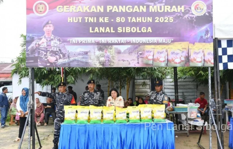 “Melalui Gerakan Pangan Murah ini, TNI ingin hadir ditengah-tengah rakyat dengan memberikan manfaat langsung, sejalan dengan tema HUT Ke-80 TNI Tahun 2025 yaitu TNI Prima-TNI Rakyat-Indonesia Maju", ujar Danlanal Sibolga.