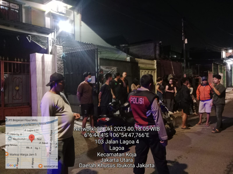 Jakarta Utara, Media Budaya Indonesia. Com -Personel Polsek Koja Polres Metro Jakarta Utara melakukan patroli tertutup sekaligus menindaklanjuti laporan layanan darurat 110 terkait adanya keributan di wilayah Kelurahan Lagoa, Jakarta Utara, Selasa dini hari (28/10/2025).