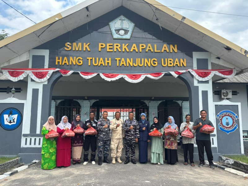 TNI AL, Bintan, Media Budaya Indonesia. Com -Dalam rangka HUT Ke-80 TNI Tahun 2025 dan sebagai bentuk kepedulian dan memberikan apresiasi kepada Guru Pendidik, Komandan Lanal Bintan Kolonel Laut (P) Dr. Eko Agus Susanto, S.E., M.M., menyerahkan paket sembako kepada Guru TK Hang Tuah Tanjung Uban, TK Hang Tuah 2 Tanjungpinang dan SMK Perkapalan Yayasan Hang Tuah Tanjung Uban, bertempat di Mako Lanal Bintan dan SMK Perkapalan Tanjung Uban, Senin (29/09/2025).