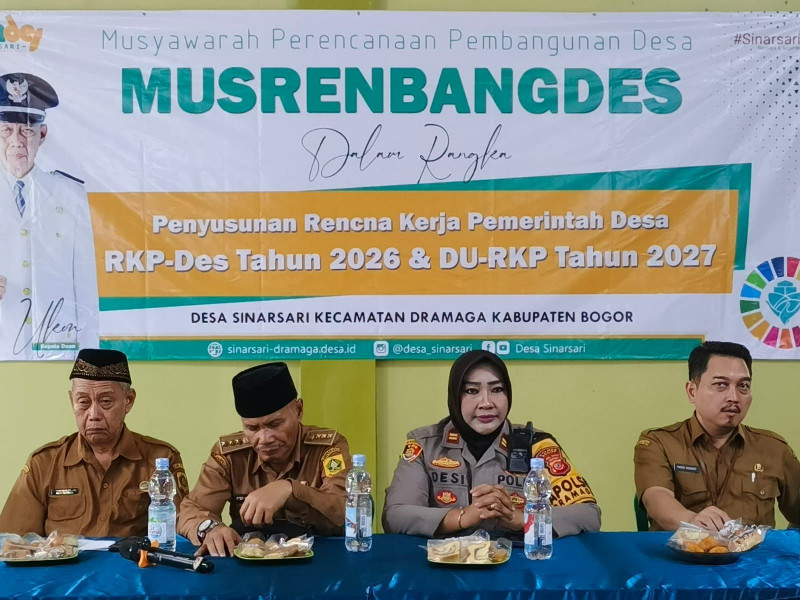 Bogor, Media Budaya Indonesia.Com -Kapolsek Dramaga, Iptu Desi Triana, S.H., M.H., bersama Forkopimcam Dramaga menghadiri Musyawarah Perencanaan Pembangunan Desa (Musrenbang) RKPDesa Tahun 2026 di Gedung Sarana Olahraga Desa Sinarsari, Kecamatan Dramaga, Kabupaten Bogor, Senin (29/9/2025).