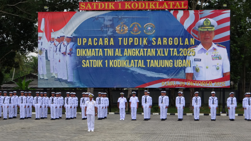 TNI AL, Tanjung Uban, Media Budaya Indonesia. Com -Komandan Satdik 1 Kodiklatal Tanjung Uban Kolonel Laut (P) I Gede Merta Yasa, S.Sos., S.E.,M.M., secara resmi menutup Pendidikan Dasar Golongan Lanjutan Siswa Dikmata Angkatan XLV TA. 2025 Satdik 1 Kodiklatal Tanjung Uban, bertempat di Lapangan Laut Arafuru Mako Satdik 1 Tanjung Uban, Rabu (29/10/2025).