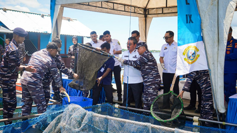 Dukung Penuh Program Ketahanan Pangan Nasional, Dankodaeral IX Gelar Panen Ikan di Keramba Jaring Apung