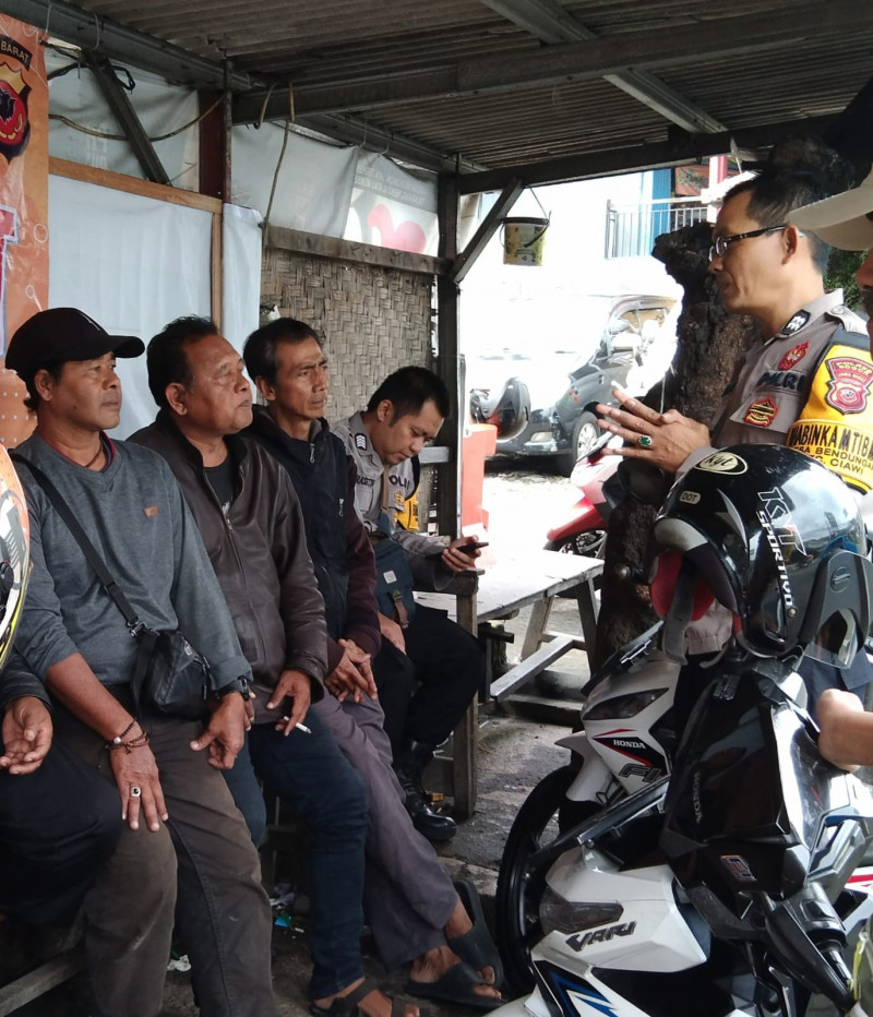 Bhabinkamtibmas Polsek Ciawi Polres Bogor Sambang Pangkalan Ojek, Himbau Antisipasi Pak Ogah, Joki, dan Premanisme