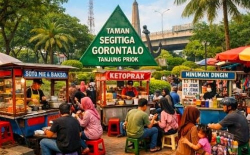 Jakarta Utara, Media Budaya Indonesia. Com -Taman Segitiga Gorontalo di kawasan Tanjung Priok, Jakarta Utara, yang dibangun sebagai ruang terbuka publik dan ikon penataan wilayah, kini mengalami penurunan fungsi. Maraknya pedagang kaki lima (PKL) yang berjualan di atas trotoar hingga memakan badan jalan membuat kawasan tersebut terlihat kumuh dan memicu kemacetan lalu lintas.