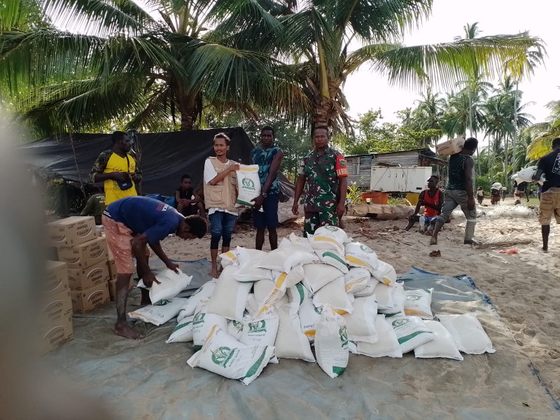 Timika, Media Budaya Indonesia. Com -Babinsa Koramil 1710-01/Kokonao, Kodim 1710/Mimika Sertu Novian Batalyob dan Praka Rinto Aruri melaksanakan kegiatan pendampingan petugas Bulog Kancab Timika dalam pendistribusian beras bantuan untuk warga miskin di wilayah Distrik Amar, Kab. Mimika, Kamis (01/01/2026). Langkah ini dilakukan oleh Babinsa untuk memastikan penyaluran beras raskin ini sampai ke penerima kepada warga miskin yang telah terdata sebelumnya.