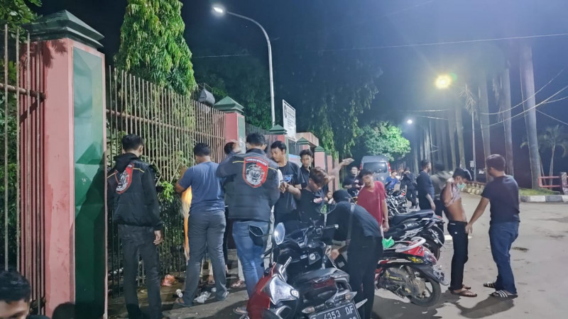 Puluhan orang geng motor itu pun kini diamankan di Mapolres beserta barang bukti.