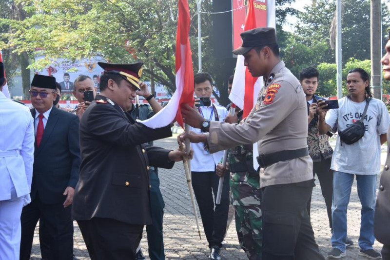 Kapolres Bogor Polda Jabar AKBP Dr. Iman Imanuddin S.H.,S.I.K.,M.H mengatakan bahwa Peringatam Kelahiran Pancasila tahun ini bertemakan gotong royong membangun peradaban dan pertumbuhan global.