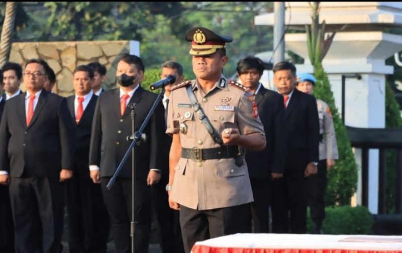Kapolres Metro Bekasi Kota Kombes Pol Dani Hamdani, S I.K, M.P.M, menjadi Pembina Upacara yang diikuti peserta upacara terdiri dari PJU, Para Kasat, Kasie, Kapolsek, Ibu Bhayangkari Cabang Polres Metro Bekasi Kotan dan Anggota Polres Metro Bekasi Kota.