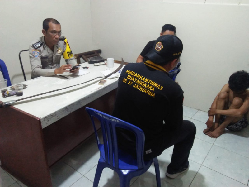 Penangkapan ini dilakukan di Posko Pokdarkamtibmas SS 27 Jalan Arteri, RT 002/004, Kelurahan Jatirahayu, Kecamatan Pondok Melati, Kota Bekasi. Selain menangkap pelaku, pihak Bhabinkamtibmas juga menyita satu senjata tajam yang digunakan oleh pelaku.