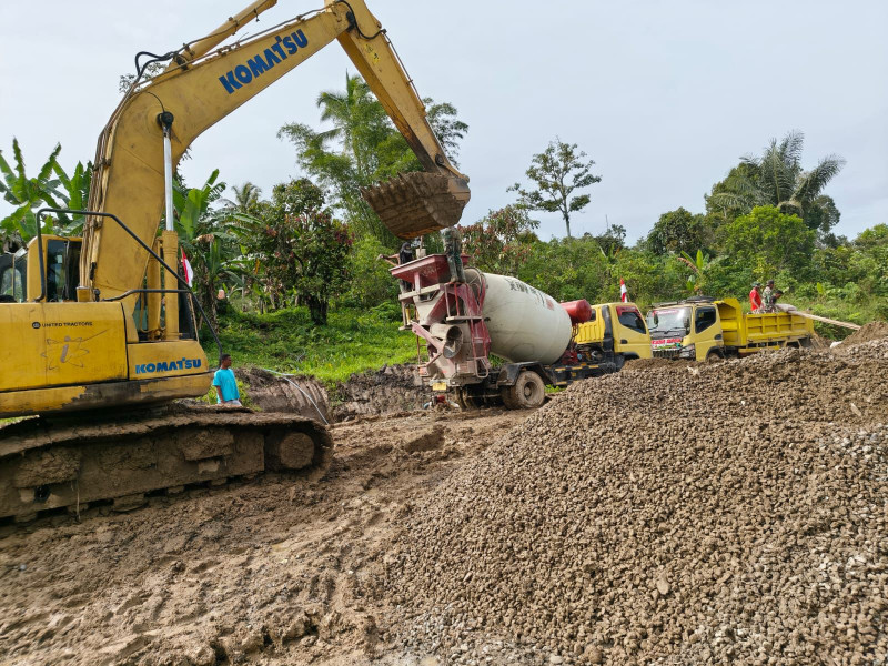 Satgas TMMD ke-126 Semangat Gotong Royong Lanjutkan Pengecoran Jalan di Kampung Babak