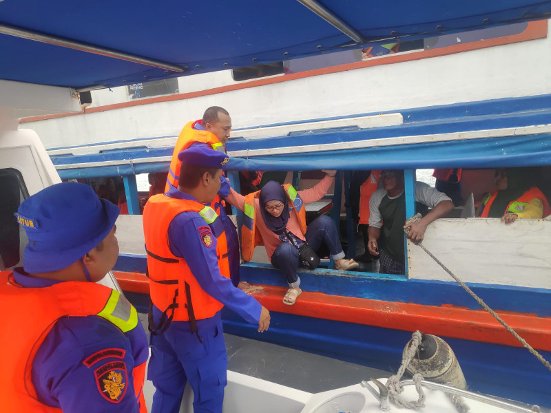 "Sebanyak 65 orang penumpang kapal berhasil dievakuasi ke Pulau Untung Jawa dengan cara kapal ditarik menggunakan kapal nelayan dan mendapat pengawalan dari Tim Gabungan Polres", tambahnya.