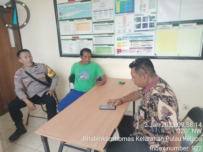 Jakarta, Media Budaya Indonesia.Com – Bhabinkamtibmas Pulau Kelapa, Polres Kepulauan Seribu, Aipda Sahrizal melaksanakan kegiatan sambang ke rumah-rumah warga di Pulau Kelapa, Kepulauan Seribu Utara, pada Kamis (02/01/2025). Dalam kegiatan tersebut, Aipda Sahrizal mengimbau masyarakat untuk menjauhi praktik judi online yang semakin marak belakangan ini.
