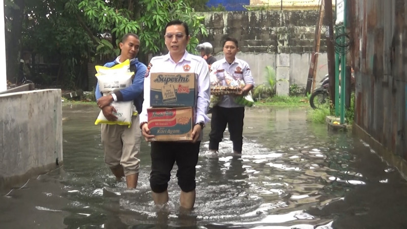 Medan I Media Budaya Indonesia.Com – Kelompok Sadar (Pokdar) Kamtibmas Resor Medan terobos banjir membawa sembako yang akan disalurkan ke panti asuhan di Jalan Tapian Nauli Medan Sunggal, Sumatera Utara, Jumat (30/06/2023). Penyaluran paket sembako dari para donator, merupakan bagian dari rangkaian perayaan Hari Ulang Tahun (HUT) Ke-77 Bhayangkara.